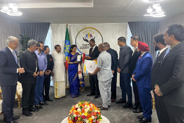 Continuing their engagements in Ethiopia, the All-Party Parliamentary Delegation met Mr. Adem Farah, Deputy Chairman of the Prosperity Party and the Deputy Prime Minister. The visiting delegation conveyed India’s unified and determined stance against terrorism in all its forms and manifestations. Hon’ ble Members of Parliament briefed on India’s ‘New Normal’ against cross-border attacks, zero-tolerance for terrorism, and all political parties resolve to stand united in all matters of national interest. Deputy PM strongly condemned the terrorist act and expressed the need for collective international action. He also conveyed Ethiopia’s strong commitment to work with India in the field of counter-terrorism.